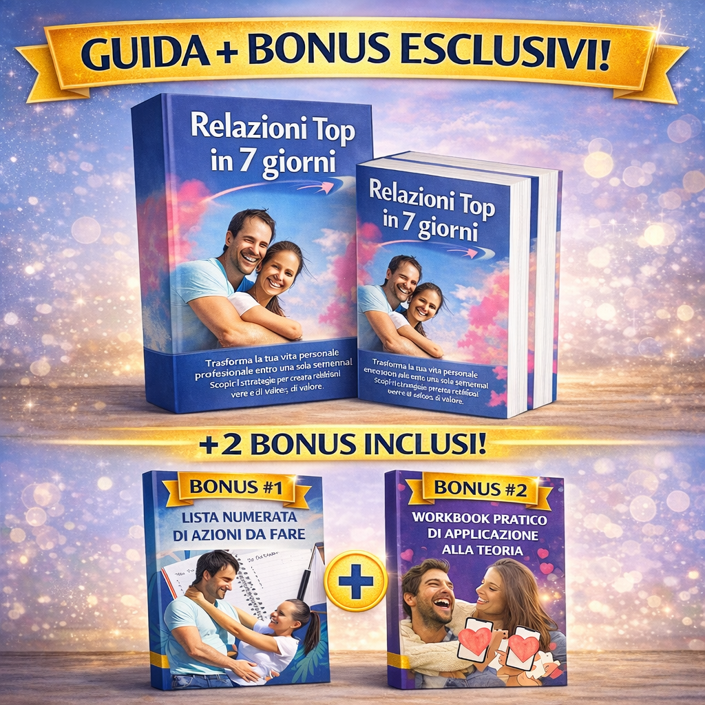 Scopri “Relazioni top in 7 giorni”, la guida che trasforma il modo in cui ti connetti con gli altri. Impara a creare rapporti autentici, solidi e utili, valorizzando ciò che sei per attrarre stima, fiducia e nuove opportunità.